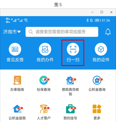 (3)在爱山东APP扫脸验证的方式中,点击“立即验证”,会出现以下界面,打开爱山东APP,然后点击首页扫一扫功能进行扫脸验证。